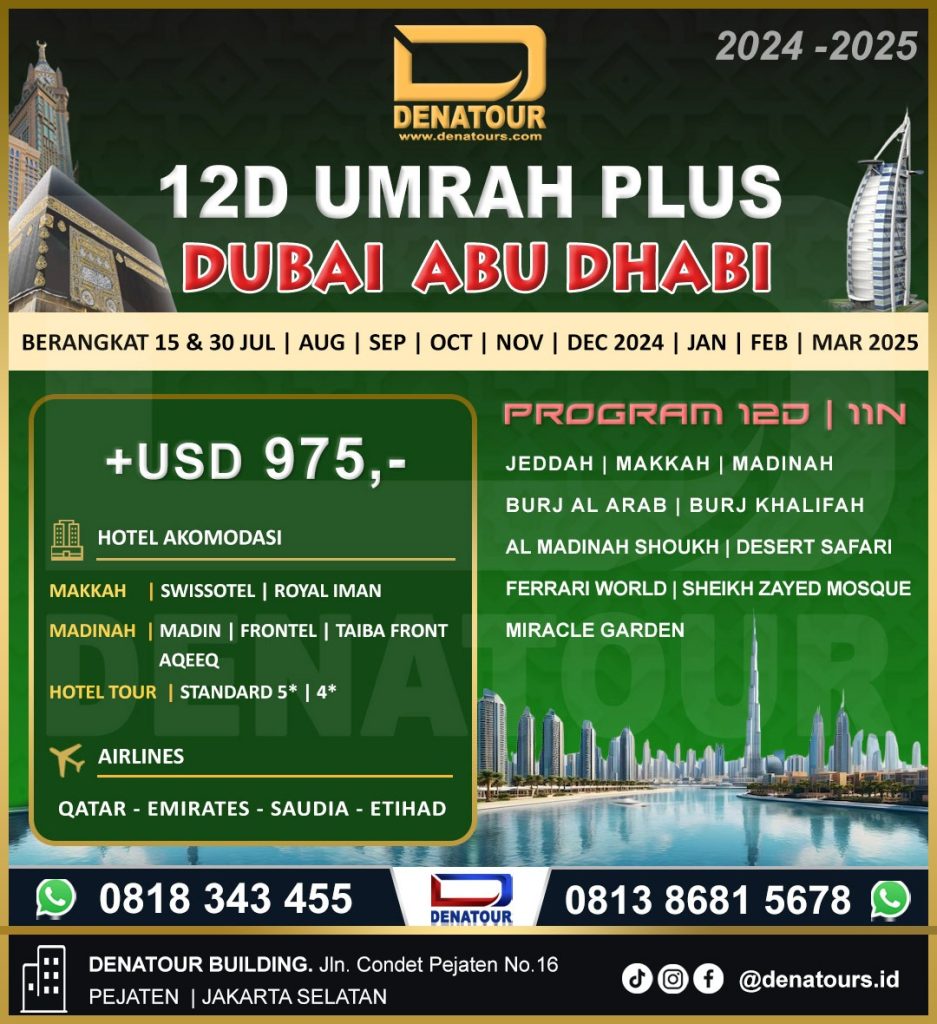 Dari Promo Umroh Plus Dubai 2025 yang merupakan jenis perjalanan yang menggabungkan antara umrah ke Tanah Suci (Mekah dan Madinah) dengan kunjungan ke Dubai, salah satu kota paling modern dan mewah di Uni Emirat Arab (UEA). Ini adalah pilihan yang populer bagi banyak orang Muslim yang ingin menunaikan ibadah umroh sambil merasakan pengalaman berlibur di Dubai. Berikut ini beberapa informasi yang perlu kamu ketahui tentang paket umrah Dubai ini: